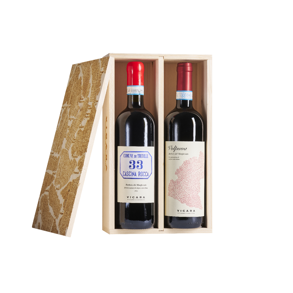 Two interpretations, one passion: Barbera. Cascina Rocca 33, powerful and elegant, embodies the essence of Monferrato tradition, while Volpuva adds a fresh and versatile twist, perfect for any occasion. The Barbera Vibes set pays tribute to Monferrato’s iconic grape with style and character, offering a unique journey through red fruit notes, freshness, balance, and depth.