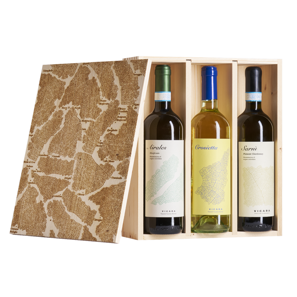 Per chi ama esplorare la freschezza luminosa del Monferrato, questa selezione di bianchi è pura energia. Il Sarnì è uno Chardonnay raffinato e complesso, perfetto per chi cerca eleganza e carattere. L’Airales porta con sé profumi freschi e una gioia vibrante, mentre il Crosietta aggiunge un tocco spontaneo e leggero, ideale per ogni momento di relax. Questa confezione è un invito a scoprire il lato più brillante e dinamico dei vini bianchi del Monferrato.