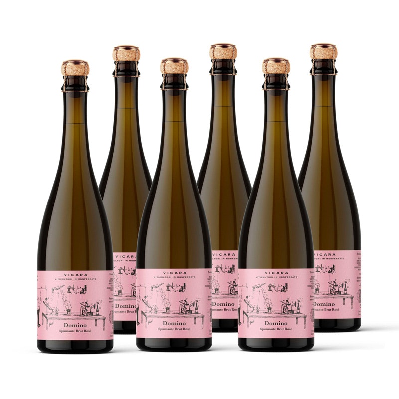 The label of our Domino features a cartoon by Pulitzer Prize winner Rube Goldberg, depicting a convoluted domino effect culminating in a popped bottle. The illustration ironically describes the heterogeneity, the intricate mechanism, and the creativity behind the creation of each wine. But "domino effect" also has another meaning: once you open a bottle, you can't help but open another. How did we get permission to use the cartoon? Giuseppe met the author's granddaughter and went to knock on the door of her house in New York. She agreed on condition that we send her 10 boxes of Dominoes once a year! Our rosé presents itself with a delicate pink color, tending towards orange. On the nose, it expresses a fine and delicate bouquet, with pleasant floral and fruity notes. On the palate, it is dry and pleasantly fresh. In short, it is irresistible: after all, it is a child of Grignolino.
