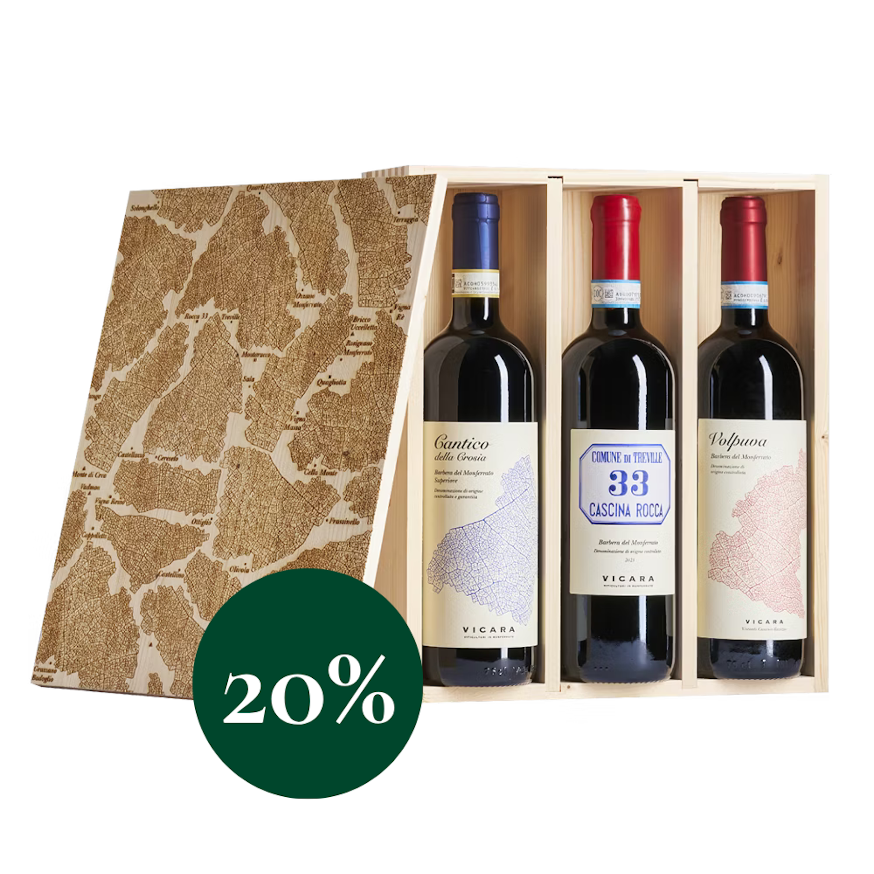 Get swept away by the deep rhythm of Barbera. Cascina Rocca 33 represents the most structured and powerful side of this grape, a cru that expresses itself with intense fruity notes and captivating depth. Cantico della Crosia is a hymn to balance and complexity, a long-aged Barbera that slowly reveals its elegance. Lastly, Volpuva brings a lively, versatile touch, perfect for social gatherings. This selection harmonizes power and freshness, celebrating every nuance of Monferrato.